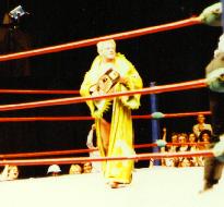 Dusty Rhodes vs Ric Flair with Gene Kiniski as special referee at the Arena in St. Louis. Photo: Butch